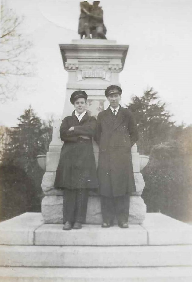 (AM01) Angus MacDonald c1941 (AM02) Angus MacDonald (left) and friend in front of the statue of Robert Burns, Beacon Hill Park, Victoria, BC (AM03) Angus MacDonald (left) and shipmate (AM04) Angus MacDonald (right) and shipmates