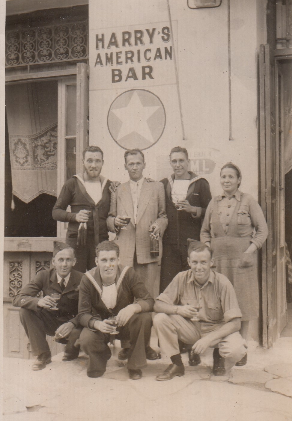 (JE01) Jim (standing to the left of the woman) at Harry's American Bar - Port of Piraeus, Greece 21 Nov 1944 (JE02) Crew of LCA Flotilla 529 on HMCS PRINCE DAVID 04 Nov 1944 (This photo is also posted on the ship's company photo page for HMCS PRINCE DAVID