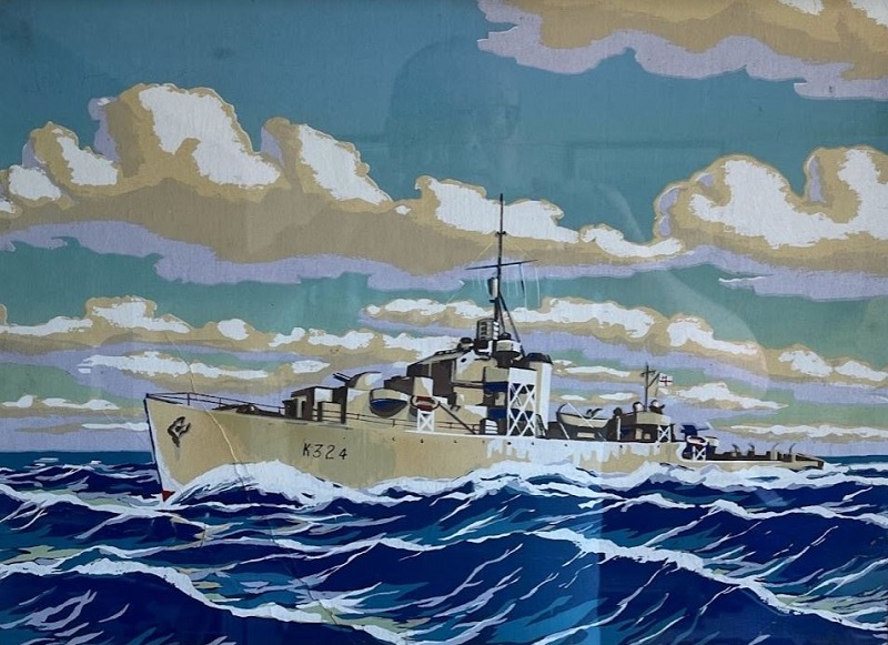 The artist, who is unknown, served in HMCS PRINCE RUPERT.  This painted was bought from the artist by Herman Stubbsa