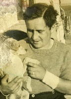 (AS01) Adolf Paul Specht with Screech - the mascot of HMCS CHARLOTTETOWN K244 - This photo was taken after they were rescued when HMCS CHARLOTTETOWN was torpedoed. Screech found Adolf in the water and held onto him until they were rescued.
