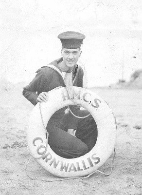 (JJ01) Jack Jacobs on the shore at HMCS CORNWALLIS Jack served in HMCS INCH ARRAN during his time in the Navy.