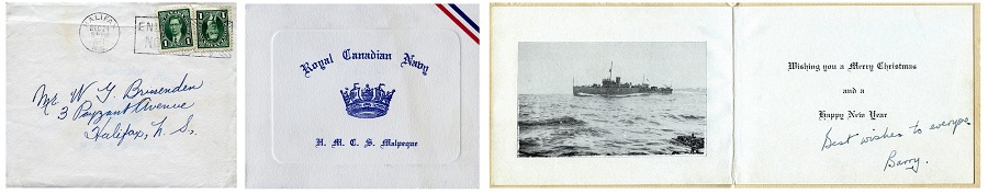HMCS MALPEQUE Christmas card sent by Barry to his family - Dec 1941