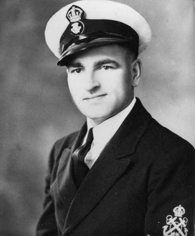 CPO HAROLD HENRY BOOTH, C1HT4, of Winnipeg, Manitoba; joined RCNVR Nov. 8, 1933; transferred to RCN May 12, 1943; served in Naden, Prince Henry, Givenchy, RNO Yarrows, Chebogue, Niobe, Peregrine, Scotian, Cornwallis, Iroquois, Royal Roads, Ontario, Stadacona; awarded CD; retired November 14, 1961. (Crowsnest magazine, Dec. 1961)
