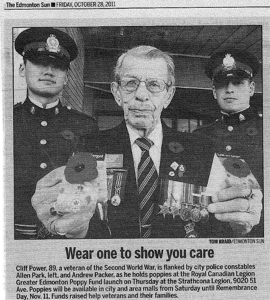 (CP01) Portrait of Cliff Power (CP02) Cliff and Margaret Power (CP03) Cliff at a Remembrance Day ceremony a few years before he passed (CP04) Cliff participating in the annual RCL Poppy Campaign - the final one he was able to take part in before his passing