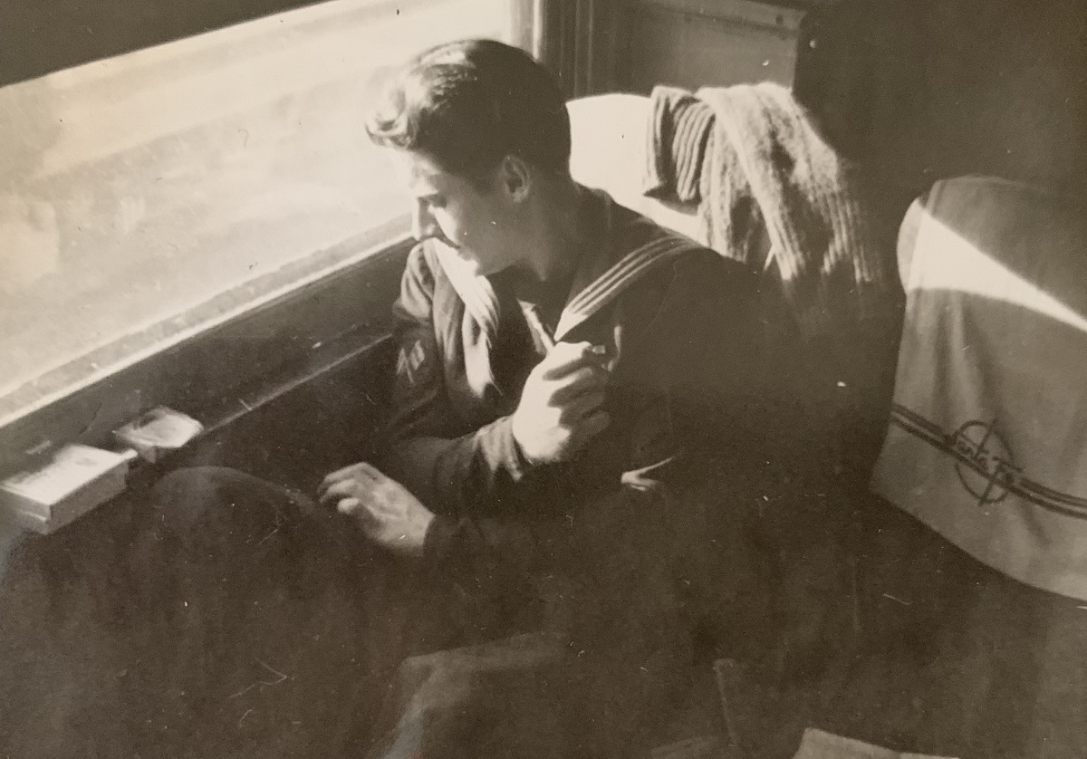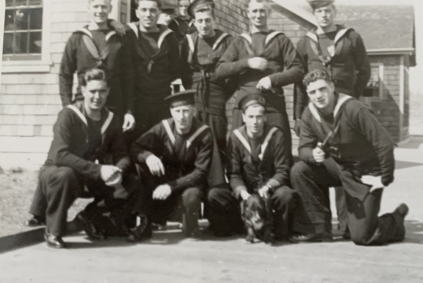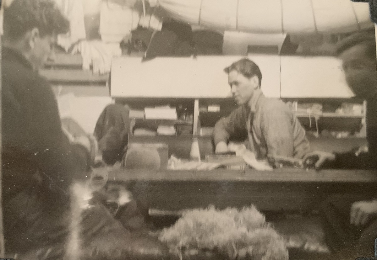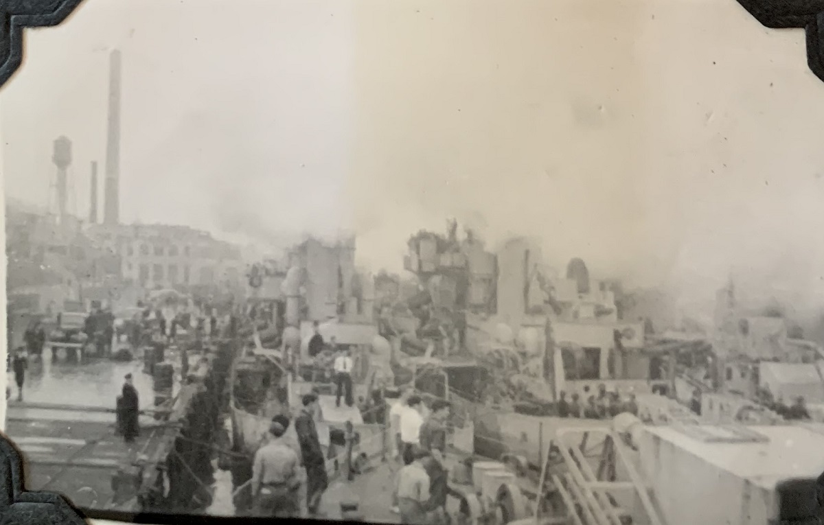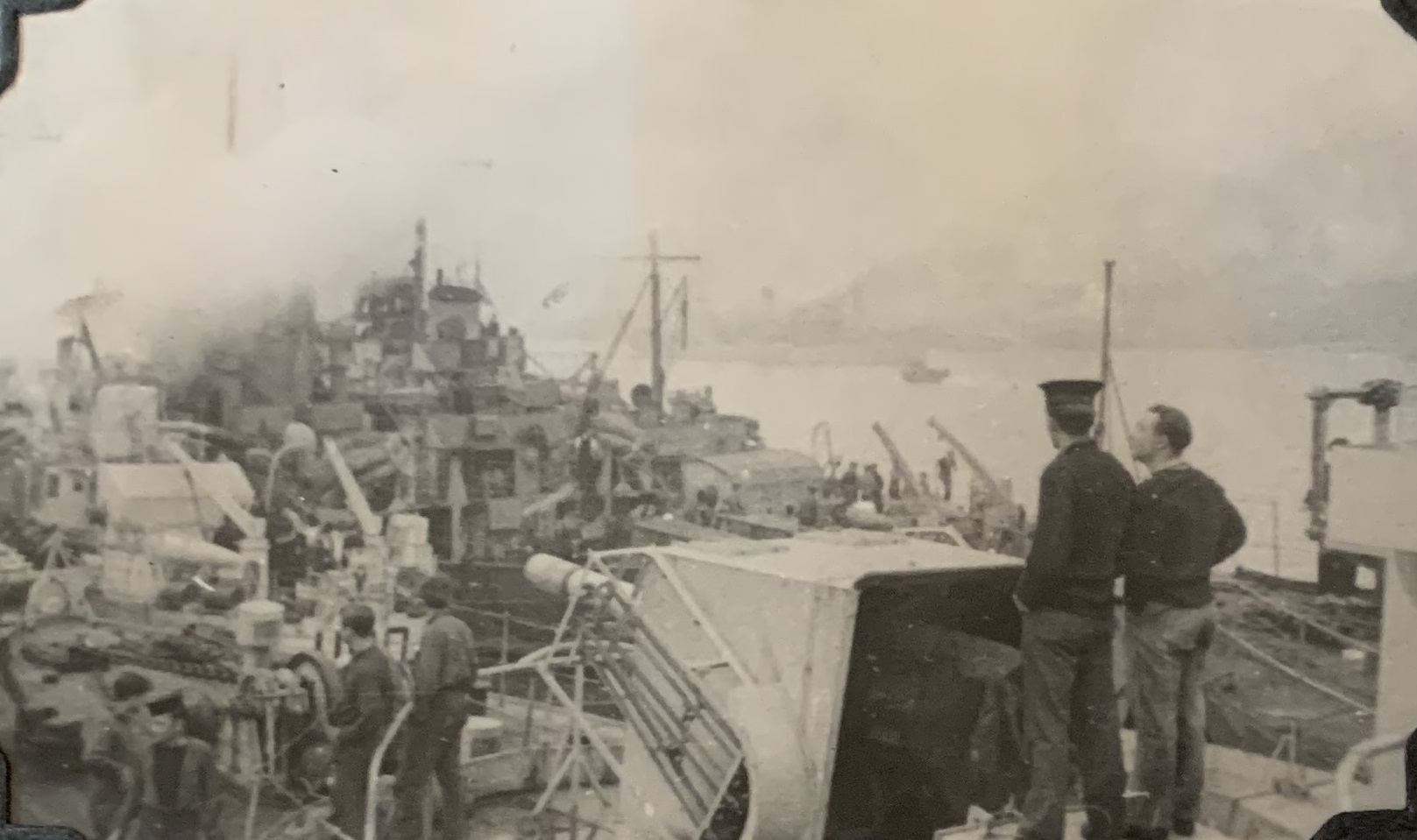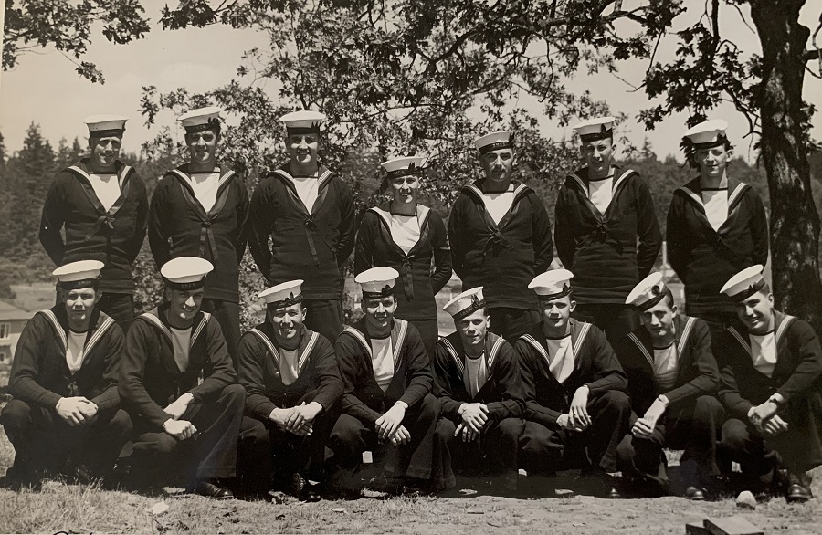 (GM12) HMCS MIDLAND K220 (GM13-GM14) A Christmas tree hoisted up the mast on HMCS MIDLAND K222 - Christmas 1944 (GM15) Ken Travena on the quarterdeck of HMCS MIDLAND K220 (GM16) Bill Moore (left) and Bob Lower (centre) in a mess deck on HMCS MIDLAND K220