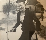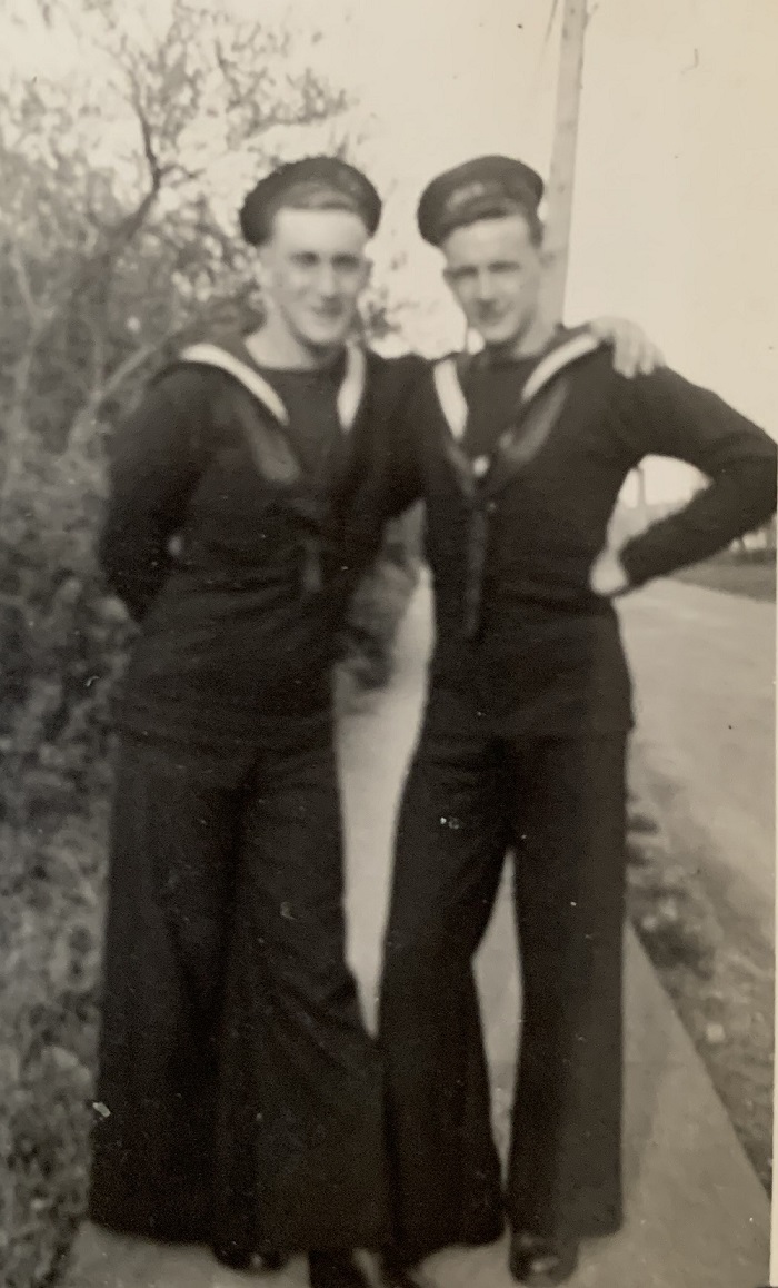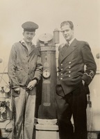 (GM17) George Miller (left) and Jack Johnson on the bridge HMCS MIDLAND K220 (GM18-GM19) V.E. Day in Halifax