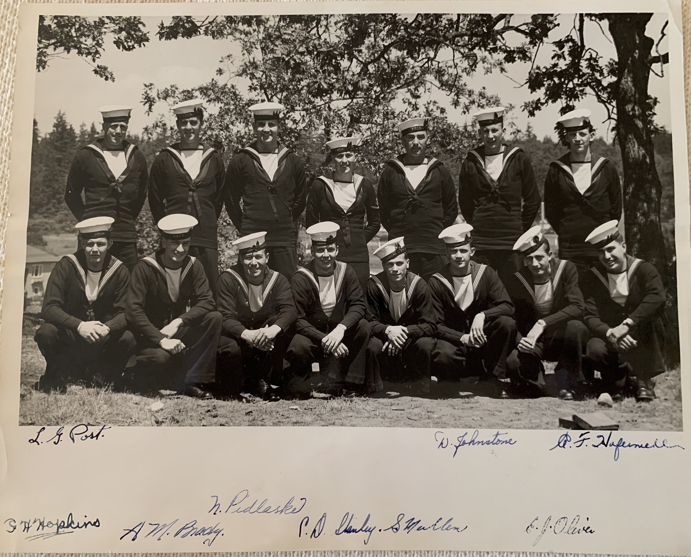Signatures on photo: L.G. Post, D. Johnstone, A.F. Hafernell (?sp), G.H. Hopkins, A.M. Brady, N. Pidleski, D. Stanley, S. Mullen, E.. Oliver