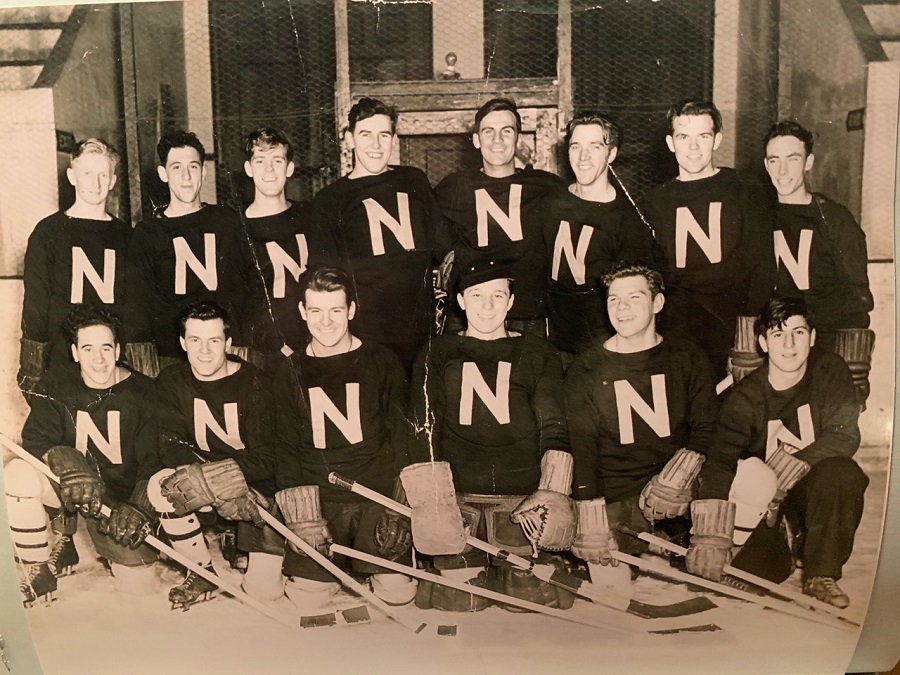(ES05) Unknown Hockey Team - possibly at HMCS CORNWALLIS Earl Simons - front row, 2nd from left