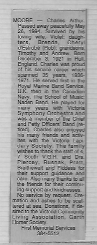 Charlie served in the Royal Marines and RCN from 21 Sep 1936 to 03 Dec 1971
