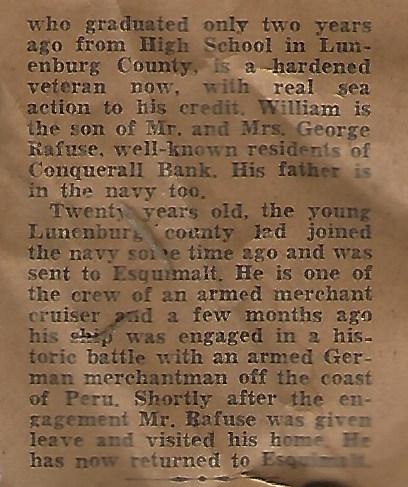 (WR00) Newspaper clipping of Wilfred Rafuse home on leave