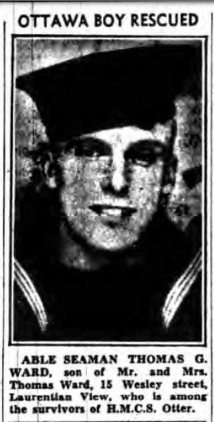 Ships served in: HMCS OTTER - AB Ward survived the sinking of HMCS OTTER