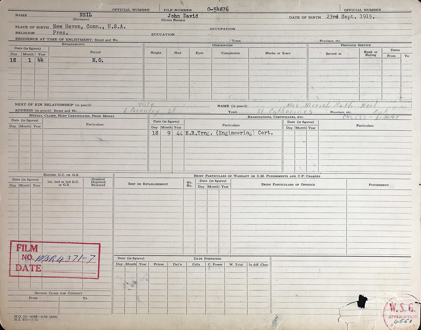 John's brother, James Philip G. Neil also served in the RCNVR during the Second World War.