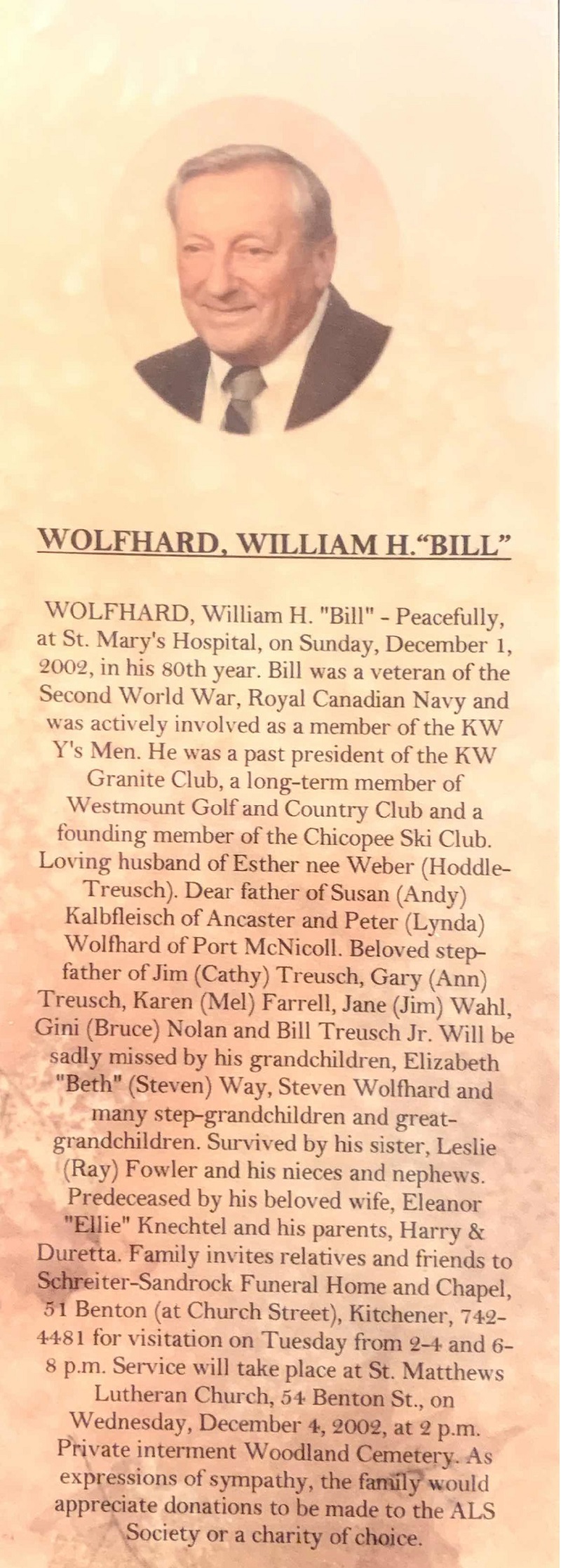 (WW01) Portrait of William (Bill) Wolfhard (WW02) William's service documents (WW03) William (Bill) Wolfhard on HMCS MIDDLESEX (WW04) Obituary of William (Bill) Wolfhard