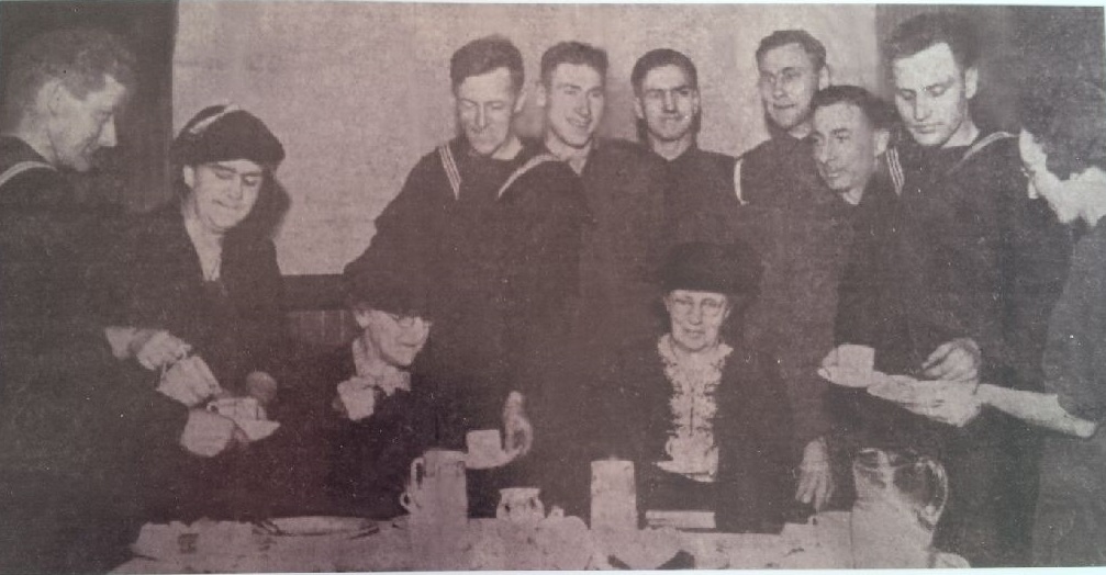 (LP01) Service Summary for A/Sto PO Leslie Pawsey (LP02) Sailors being treated to tea and a meal - Leslie Pawsey 1st sailor on right