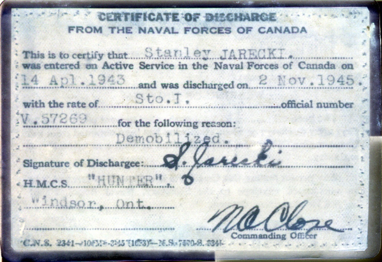 (SJ01) New recruit - Seaman Stanley Jarecki (SJ02) Stanley's certificate of discharge