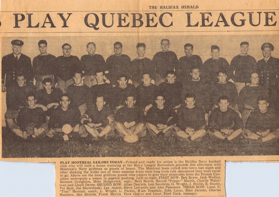(SJ04) Newspaper article on the Halifax Navy Football Team - as they prepare to battle Montreal's Navy Team.