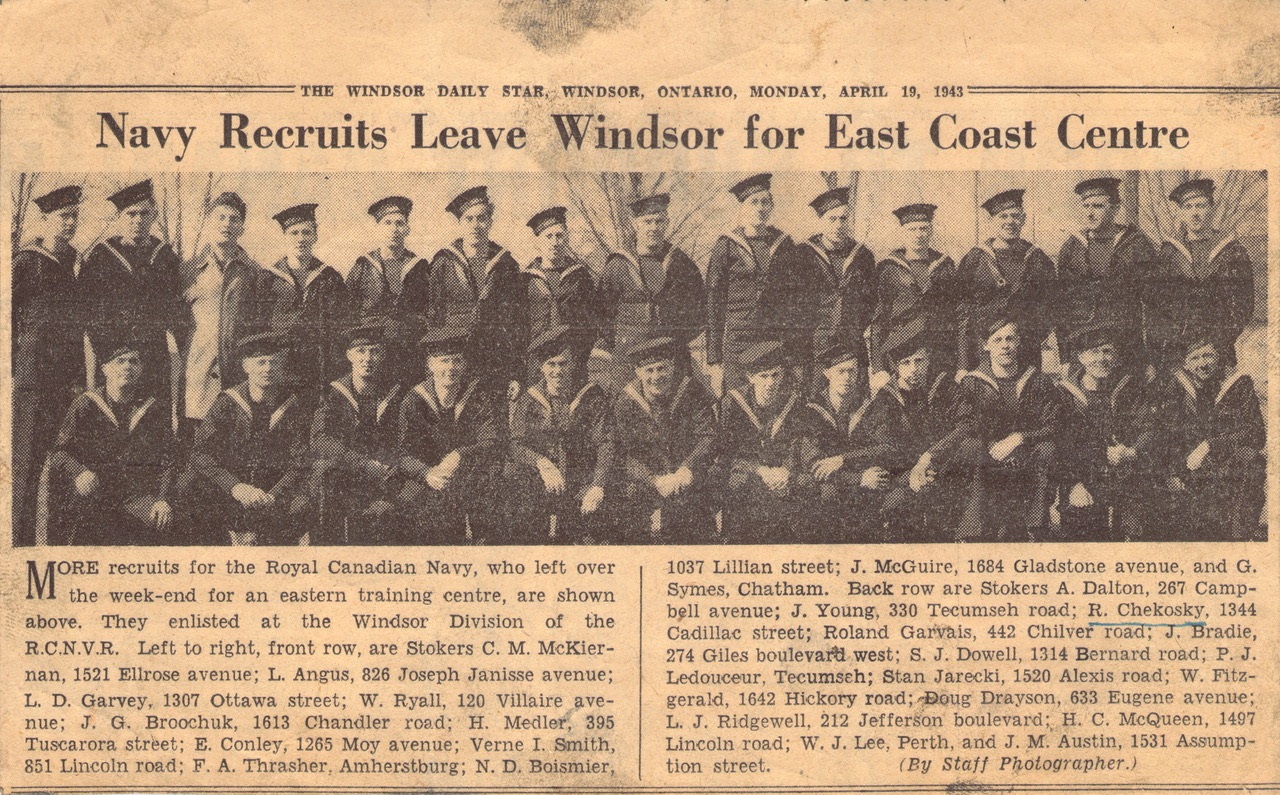 (SJ03) Article on recruits from the WINDSOR DIVISION RCNVR leaving for the East Coast Windsor Daily Star, Monday, 19 Apr 1940