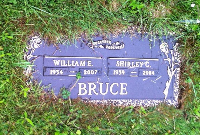 Grave marker for William Bruce at the Pleasant Hill Cemetery, Lower Sackville, N.S.