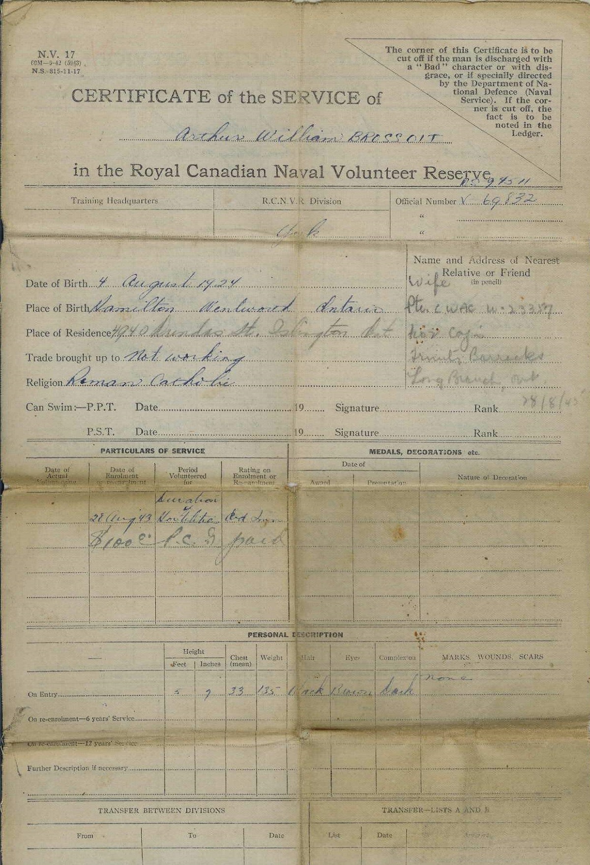 (WB10) This Memorial Cross was sent to Williams widow as his death in 1994 was attributed to his service during the Second World War. Engraved on the back of the Memorial Cross is AB V69832 Brossoit, A.W.