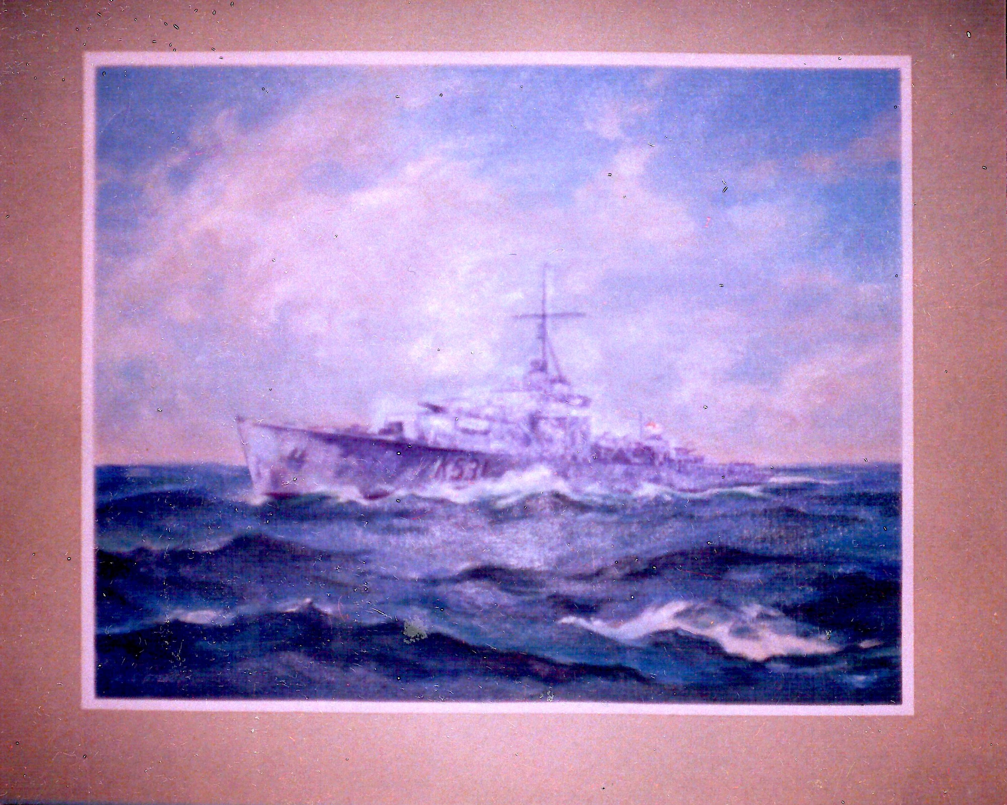 (RS24) HMCS STONE TOWN K531 (RS25) HMCS STONE TOWN'S pendant numbers "K531" (RS26) Artwork for HMCS STONE TOWN designed by Lt Richard Simon. It is not known where on the ship it was displayed as this photo does not show if it was on the bridge, the ship's gunshield or some other part of the ship (RS27-RS28) HMCS STONE TOWN'S funnel marking for EG C-8 designed by Lt Richard Simon