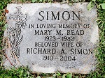 SIMON, Richard Arthur (Dick) - (Retired after 45 years from the Toronto Star as an Editorial Artist) On October 5, 2004 at Scarborough General Hospital in his 95th year. Dick Simon, dearly beloved husband of the late Mary Read. Loved father of Rick Simon and Lynne Simon. Cherished grandfather of Darren. Friends may ball at the Trull "North Toronto" Funeral Home & Cremation Centre, 2704 Yonge Street on Thursday from 2-4 p.m. and 7-9 p.m.. A Funeral Service will be held in the chapel on Friday at 1 p.m. Interment Beechwood Cemetery. If desired, memorial donations may be made to the Princess Margaret Hospital Foundation or to the Heart & Stroke Foundation.