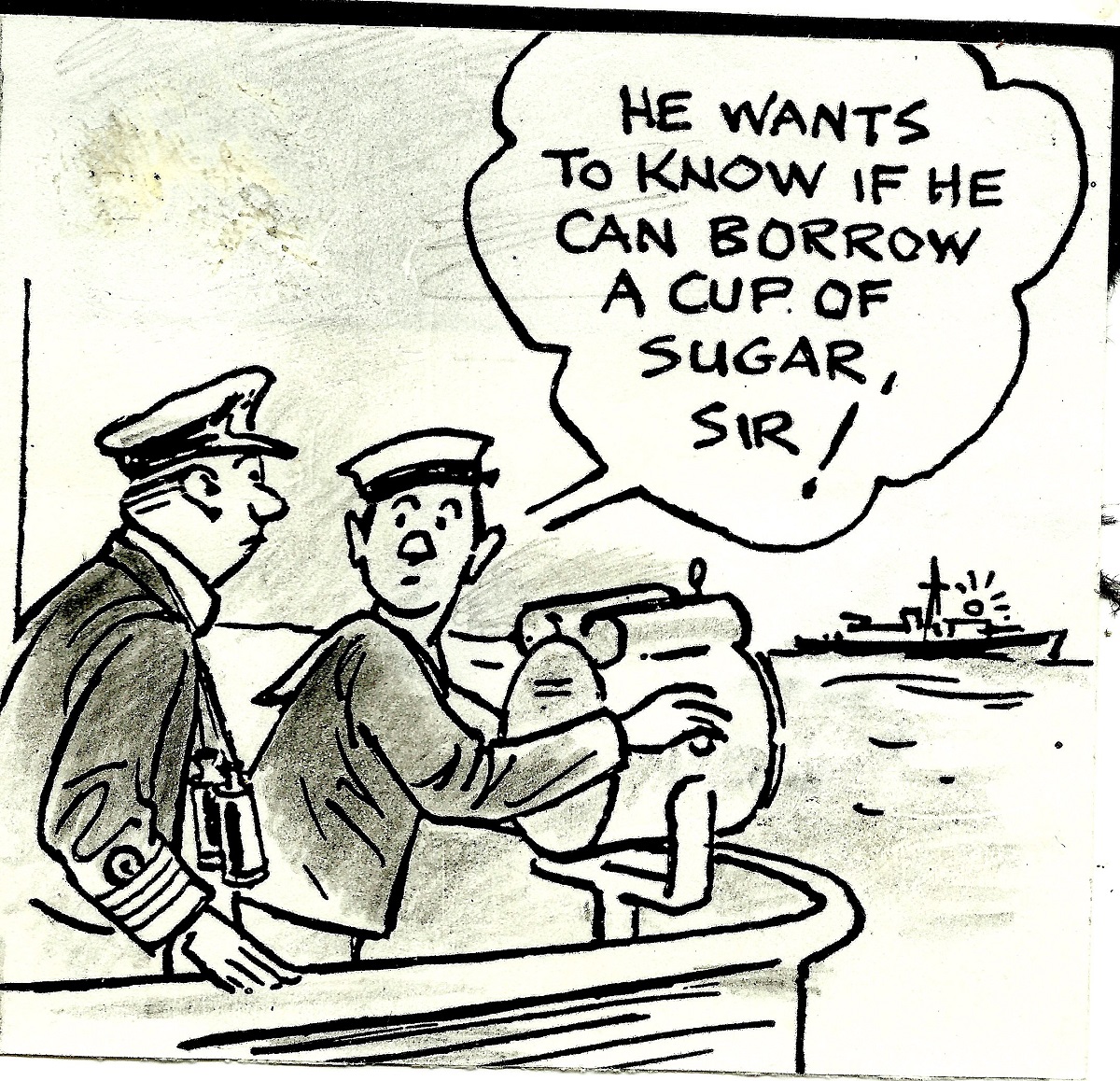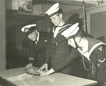 (RS39) Unknown sailors painting ship on HMCS STONE TOWN (RS4) HMCS STONE TOWN Christmas Tree decorated with toilet paper - Christmas 1944 (RS41) Bi-plane flying past HMCS STONE TOWN (RS42) Officers on the bridge of HMCS STONE TOWN (RS43) Tot time aboard HMCS STONE TOWN