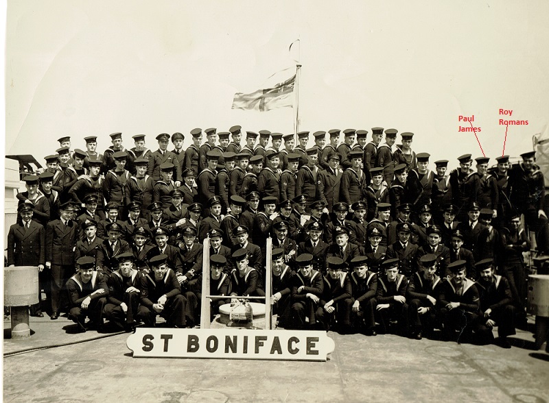 Webmaster's note: it is not known if these sailors are all from ST BONIFACE J332 or if the are from various ships
