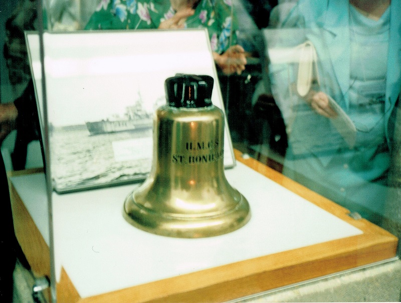 Ship's bell of HMCS ST BONIFACE J332 on display at the reunion in 1994