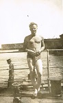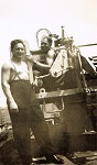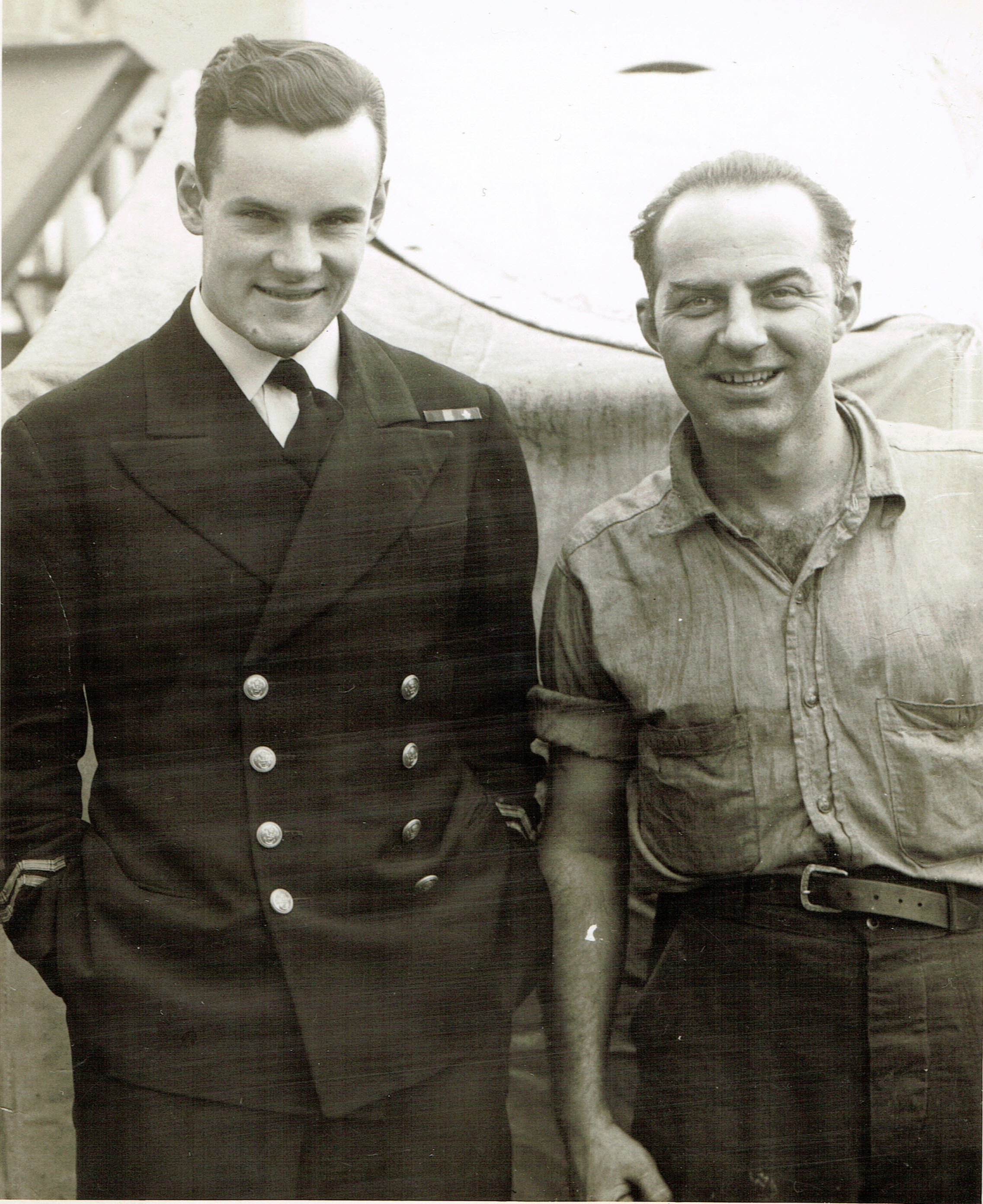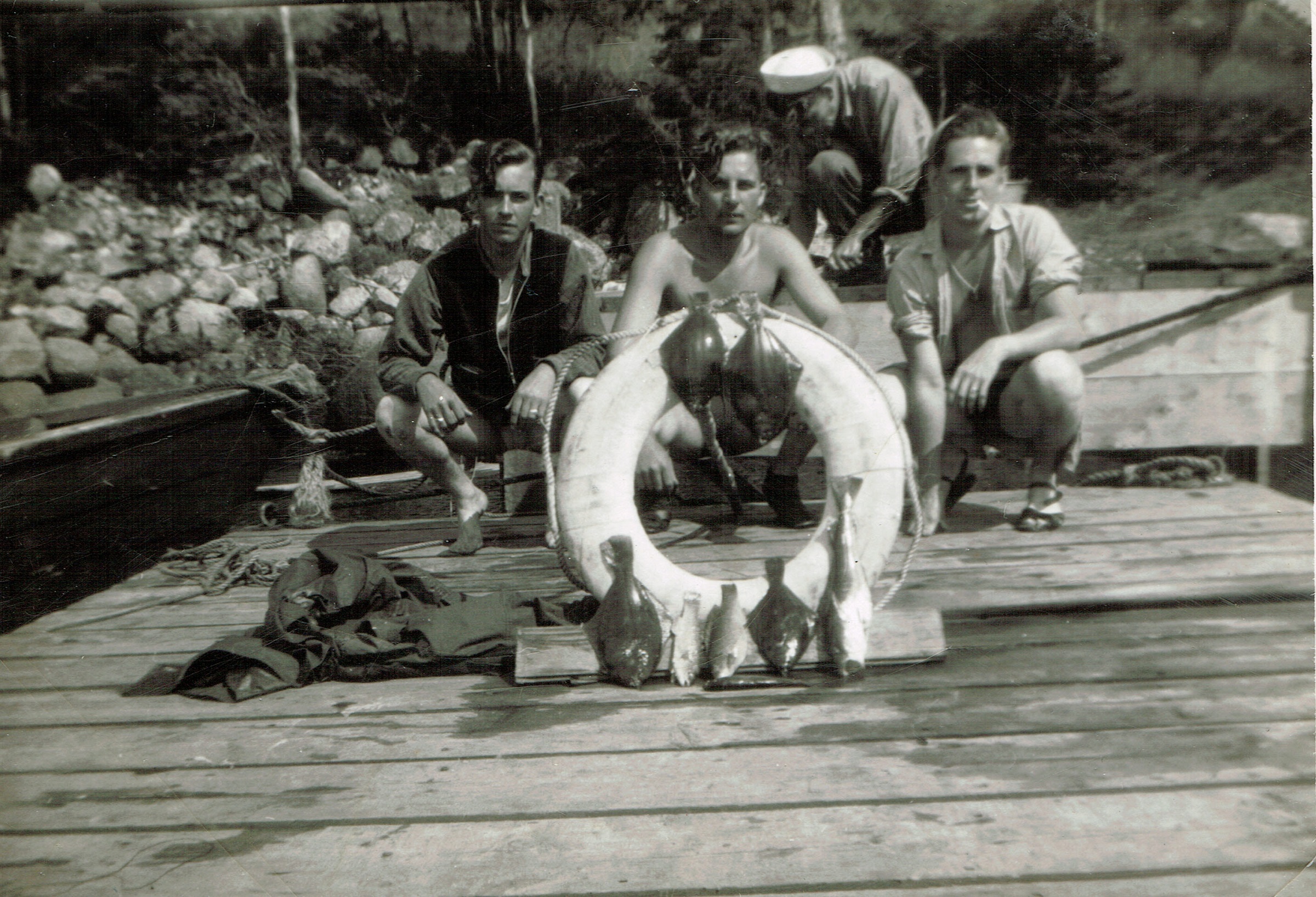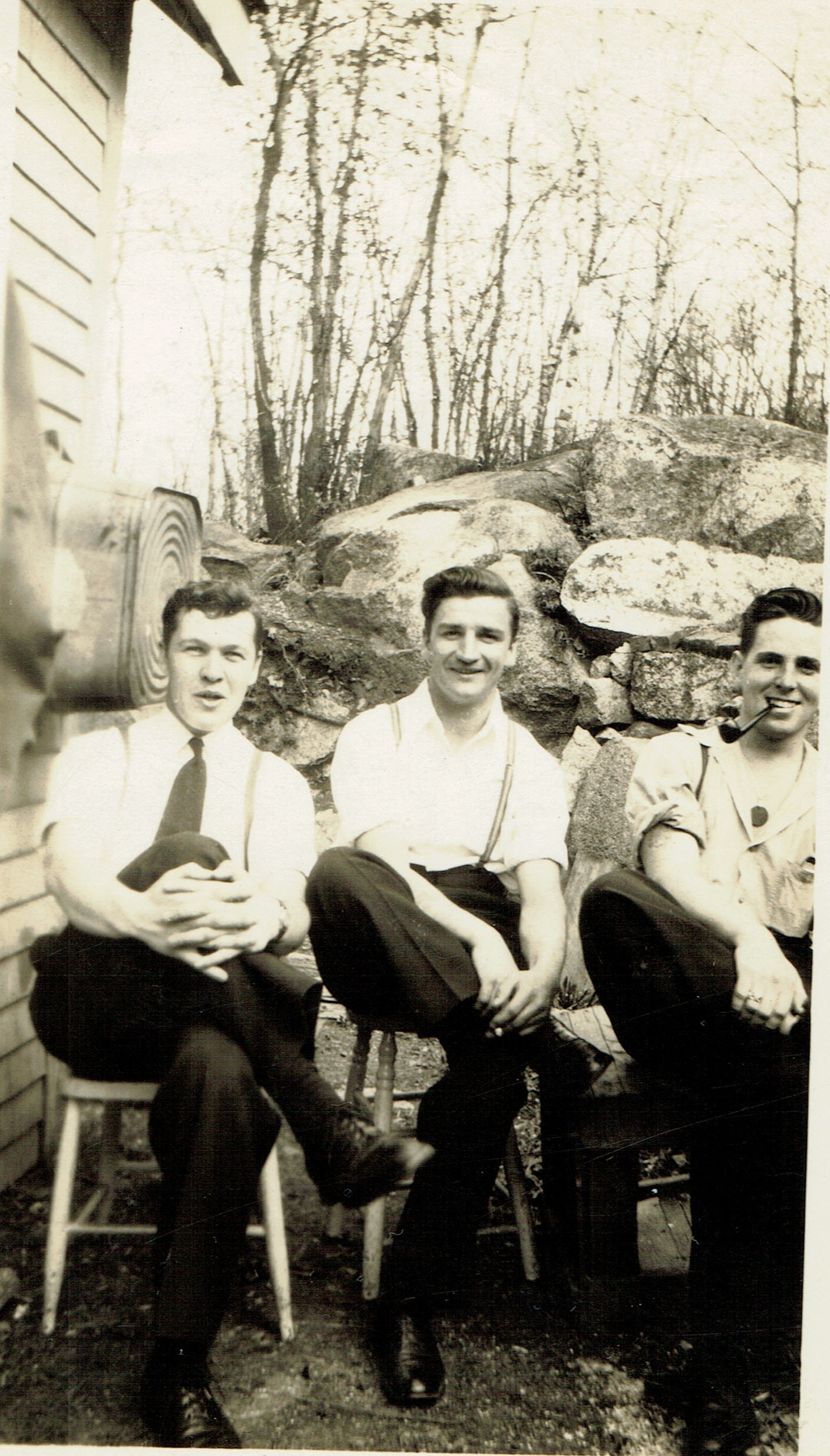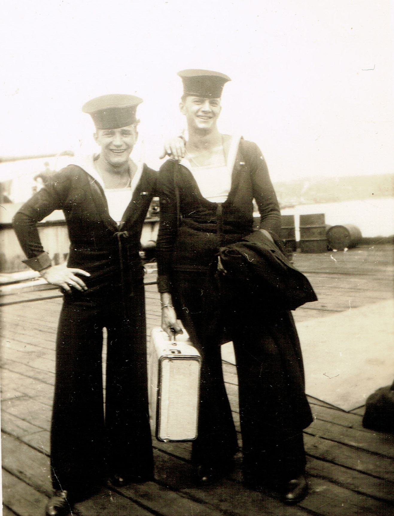 (PJ29) Paul James and shipmates on weekend R&R (PJ30) Stray dog that was on HMCS ST BONIFACE J332 for a while (PJ31) Stoker Al Gardener on HMCS ST BONIFACE, Halifax, NS (PJ32) Stoker Paul James on HMS ST BONIFACE J332, Halifax, NS (PJ33) Stokers from HMCS ST BONIFACE J332 on the jetty with HMCS ALGONQUIN R17 in the background