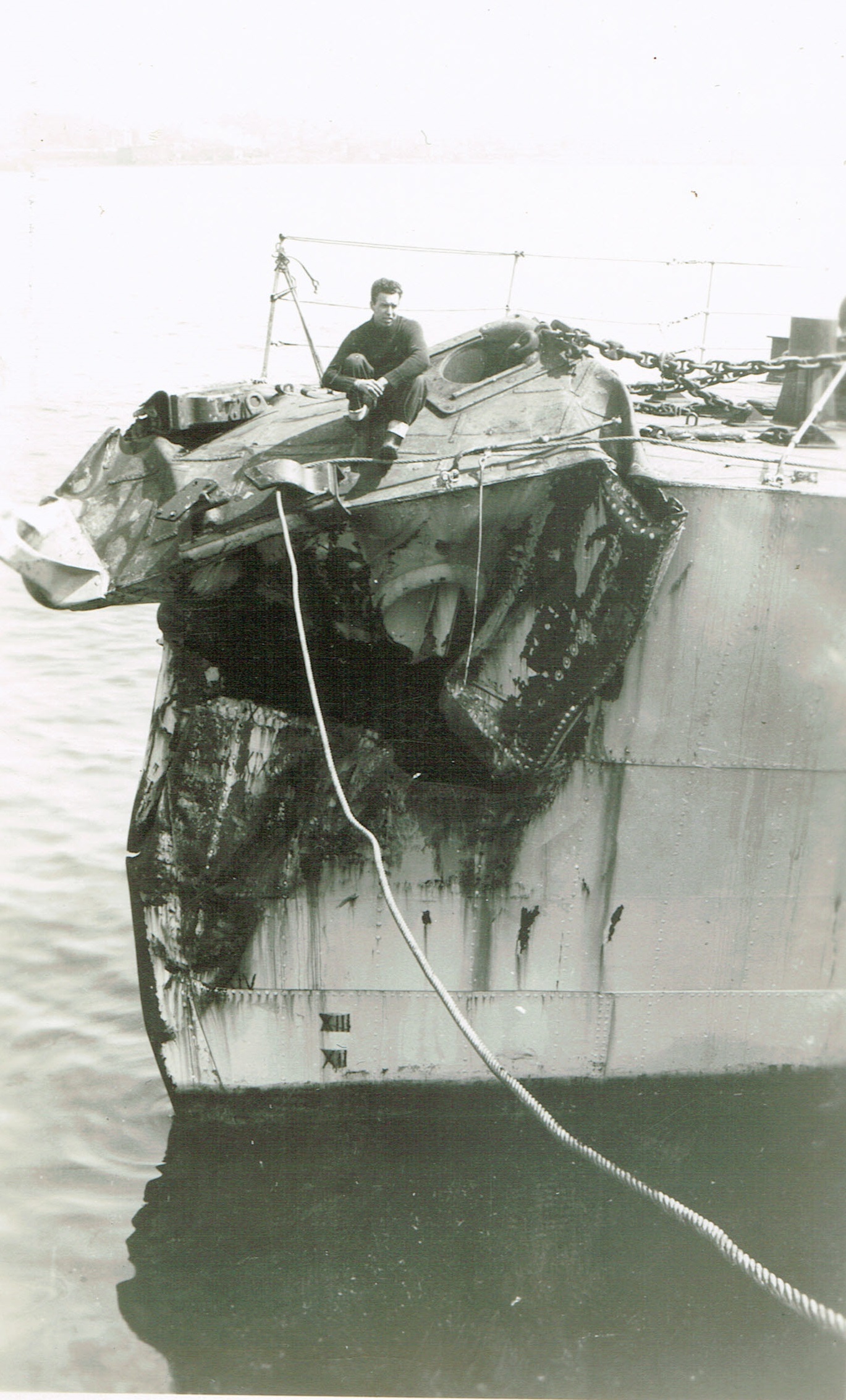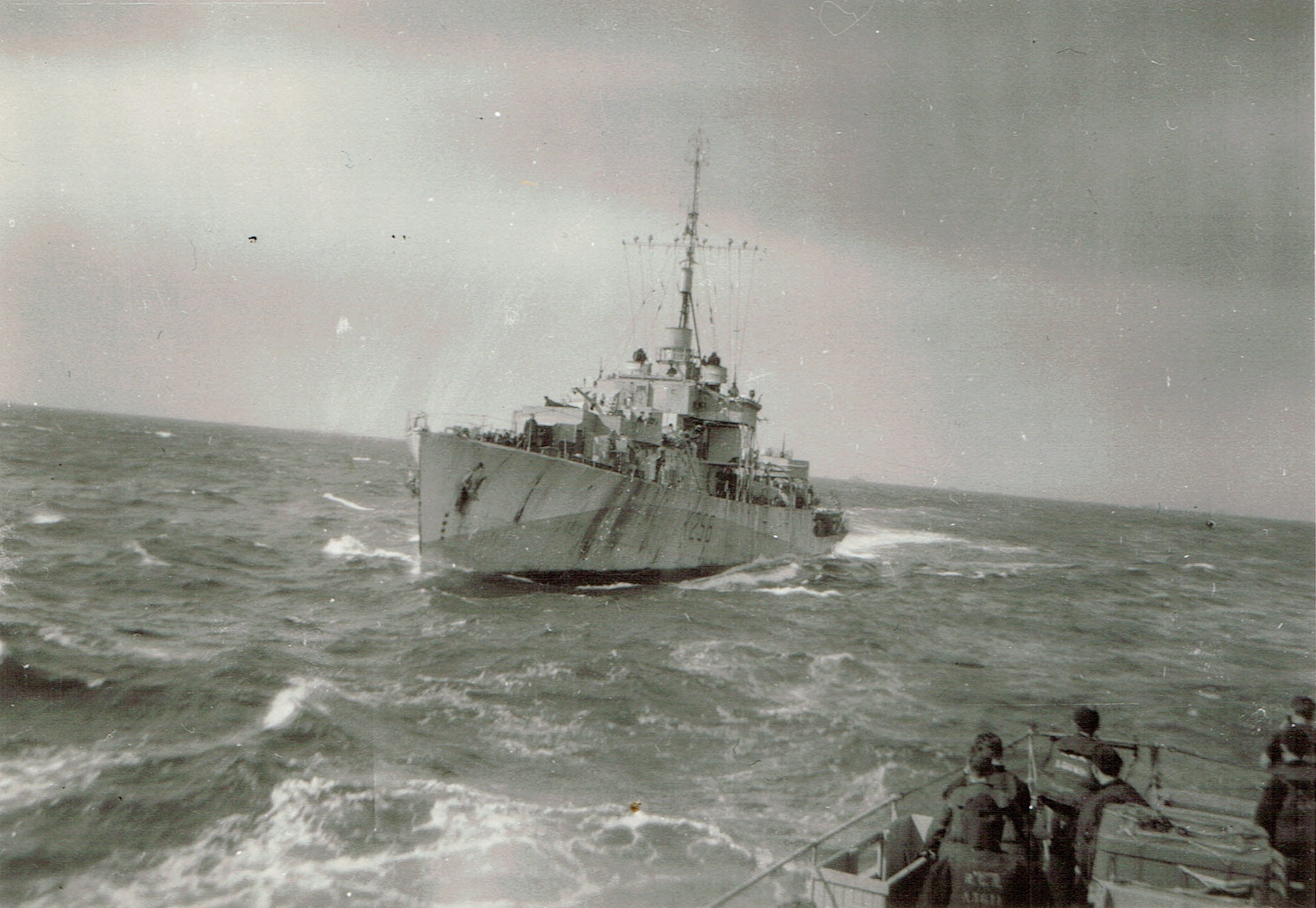 (PJ38) HMCS VALLEYFIELD K329 - taken not long before she was torpedoed and sunk (PJ39) Tribal Class destroyer HMCS IROQUOIS G89 (PJ40) Damage of HMCS ST BONIFACE J332 after her collision with the freighter SS EMPIRE CHAMOIS on 18 Apr 1945 in the Halifax approaches as the freighter was forming up for convoy SC173 (PJ41) Unknown sailor sitting on the damaged fo'c's'le of HMCS ST BONIFACE J332