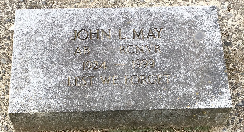 Headstone for John (Jack) May in the Chilliwack Cemetery, Chilliwack, BC