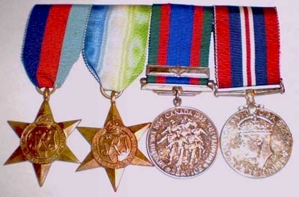 1939-45 Star, Atlantic Star, Canadian Volunteer Service Medal with Clasp, War Medal 1939-45
