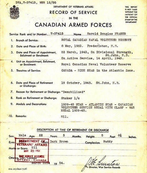 Harold Fraser's Record of Service