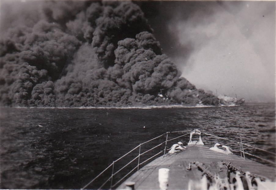 Webmaster's note: These photo have been submitted by families of sailors who served in LANARK, MERRITTONIA and KAPUSKASING and appear to be official RCN photos. Written on the back of those from the collection of Charles Sigut HMCS Lanark K669 - "Taken from the bridge of Lanark 18 04 1945".
