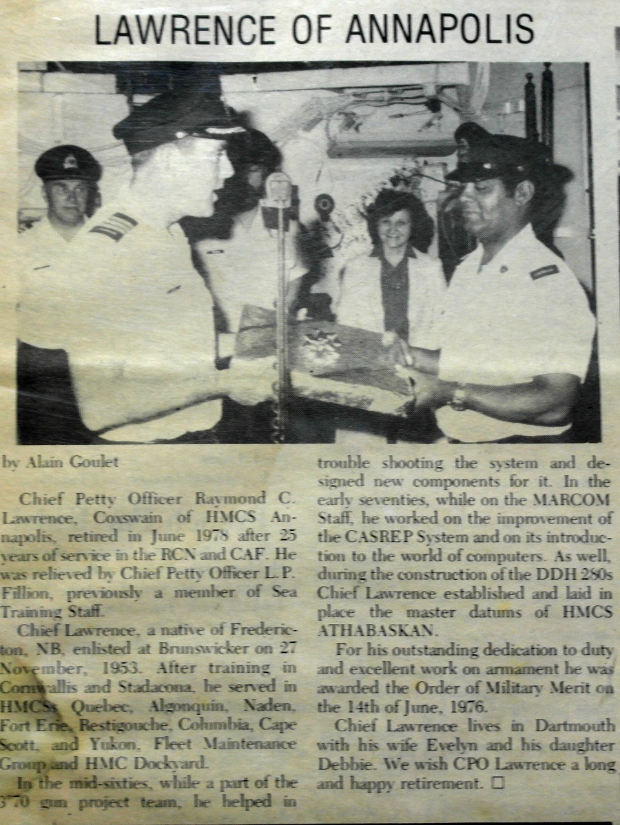 Article from the Trident on the retirement of CPO1 Raymond Lawrence