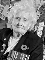 Bunny did many things over the course of her life. In 1968, she purchased and ran a small grocery store on the Waverly Road for years; later, Head Cashier at Woolco at Penhorn Mall, and Commissionaire at the Grace Maternity Hospital and Dartmouth General Hospital. She volunteered with a special needs bowling league. She was a member of the Somme Branch # 31 Legion and was an enthusiastic supporter of the annual poppy campaign pinning poppies on people until the age of 97, thanks to the help and friendship of Paul O’Boyle. In 2012, Governor General David Johnson requested her presence at Rideau Hall for a reception to honour her for service to Canada. At the time of her death, she was the oldest member of the Nova Scotia Wrens Association, oldest member of the National Wrens Association and oldest member of the Canadian Veterans Association. She toured Europe at the age of 93 on a river boat and recounted exciting rides while being wheeled through the streets of the various cities. One particular thrill-seeking downhill ride earning her the nickname” Runaway Granny” for the remainder of the trip.