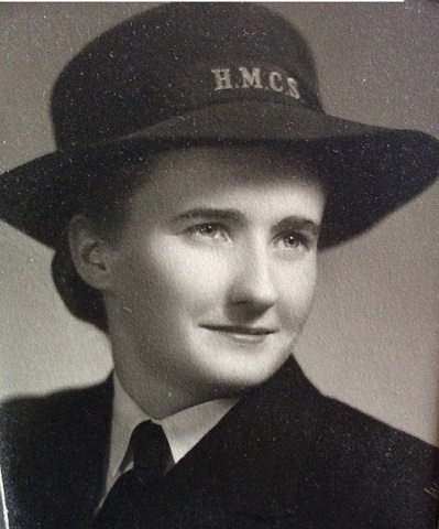 Bunny left school after grade 8 when her school Principal told her education was a waste of time for a woman and she would do well to marry a farmer. Instead, she attended Business College. Then joined the Royal Canadian Navy in 1942, following the service of an Uncle who served in “the great war”, to as she used to say “to win the war and see the world”. After Basic Training in Galt, Ontario, she was selected to be a Wardroom Assistant and personal Steward to the Commanding Officer. She was promoted to Leading Wren in a month. She served in Halifax and St John’s Newfoundland where she spent VE day celebrating for two days. The trip to St John’s was harrowing as they were hunted by a Nazi U-boat. She detailed standing on the deck of the troop carrier in a life jacket in preparation to abandon ship if necessary while the escorting Corvettes dropped depth charges to protect them.