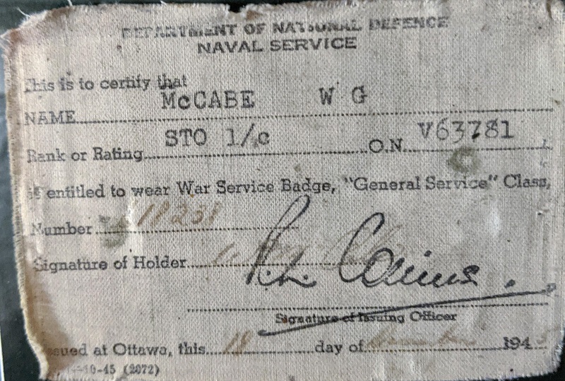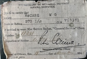 (WM01) Portrait of Willam McCabe (WM02) Authorization to wear the War Service Badge