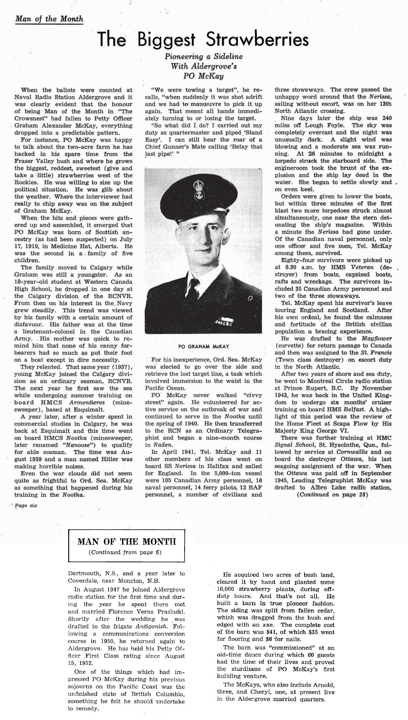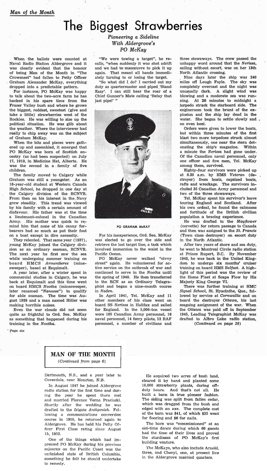 Petty Officer Graham McKay - HMCS ALDERGROVE'S Man of the Month CROWSNEST magazine Nov 1953 Click on the above article to view a large image