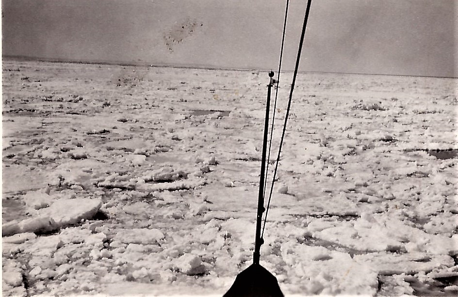 (DM26-DM27) Officers on bridge of unknown ship in ice field (DM28-SN29) Unknown ship transiting ice field