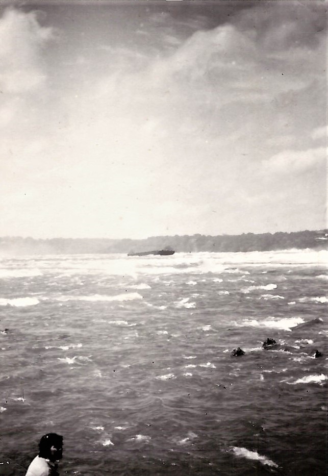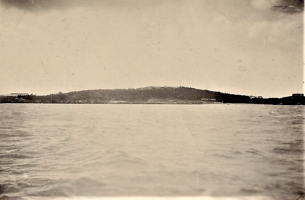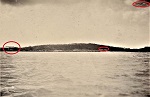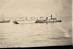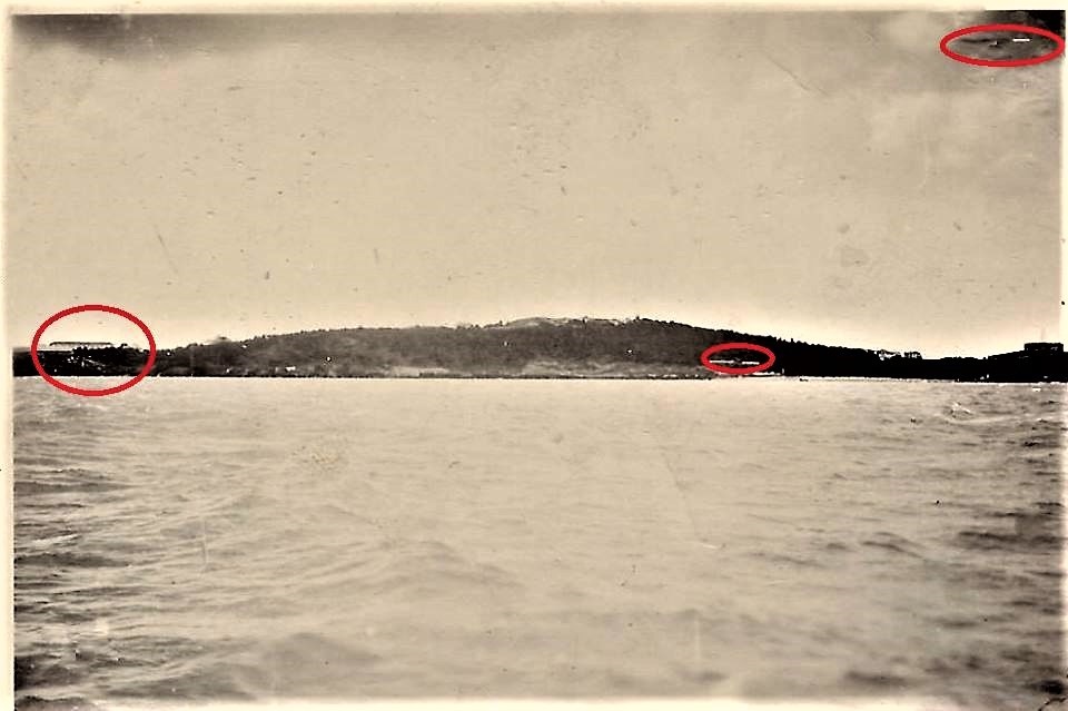 (DM30) Unknown vessel aground on it's side on shore. It appears there are sailors in the water in the lower right side of the photo - with sailor in the foreground on an unknown ship (DM31) Bedford Basin seen from unknown ship (DM32) Another view of Bedford Basin (DM33) Same photo as DM32 - with 3 aircraft circled that were in the photo