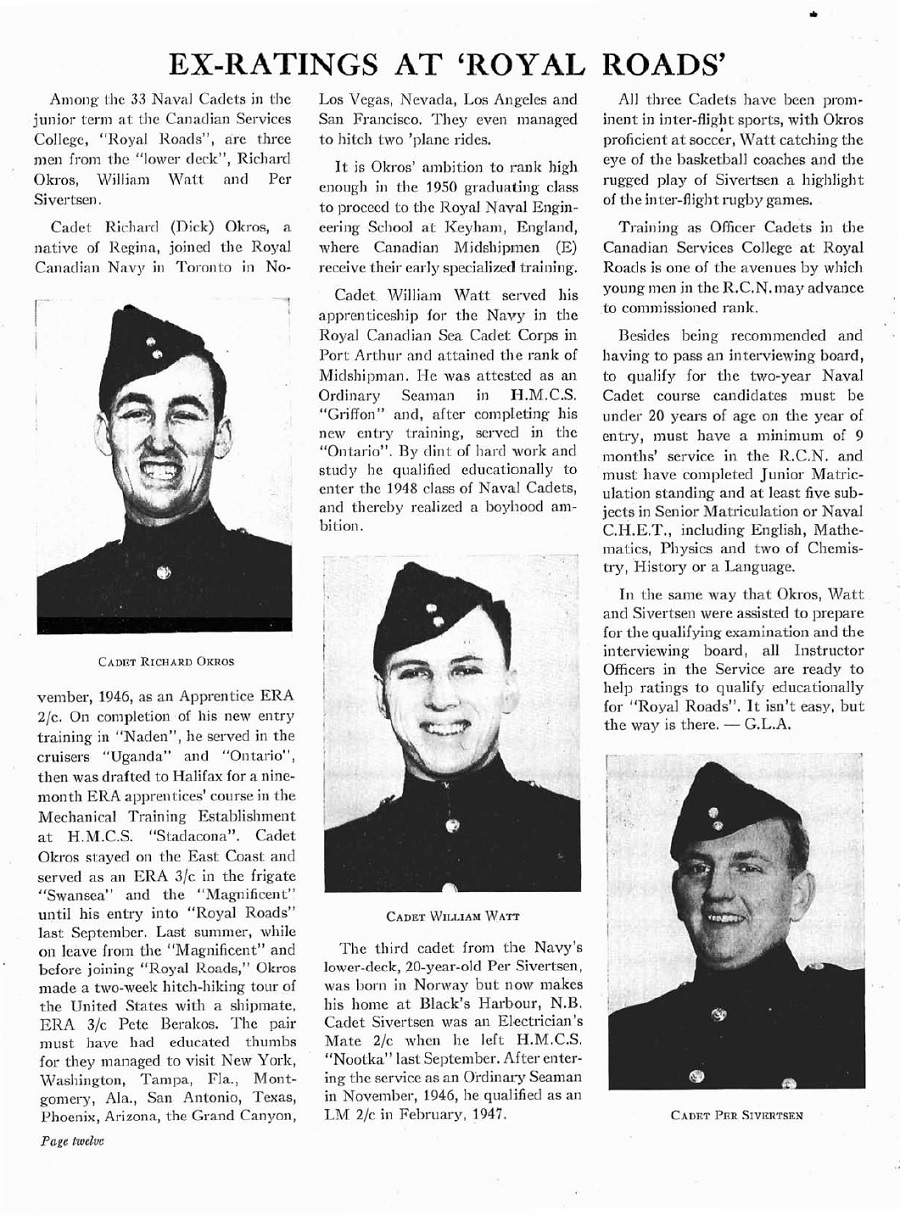 HMCS MALAHAT for Royal Roads Military College (UNTD 1949-1951)