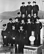 (GS13) Crew of ML Q122 c1944 - George Sterne just to the right of the mast wearing a t-shirt and his cap askew (GS14) Crew of ML Q122 - CPO George Sterne front row, centre