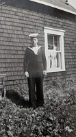 (KH01) Portrait of Seaman Ken Hussey  (KH02) L-R: Reg Rhodes, Ken Hussey and Alfred (Alfie) Reid  (KH03) Ken Hussey in front of his father's house in Bathurst, NB.