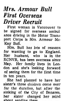 (EB01) Eileen Shannon Bull - Wedding Anniversary photo (EB02) Newspaper article on Eileen Bull being the first woman in Vancouver to be recruited for overseas ambulance driving