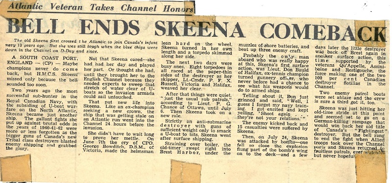 (RH04) Article on HMCS SKEENA'S participation in the operations in the English Channel click on the above article to view a larger image