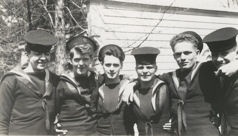(AB11) Art Bell holding the winch brake on HMCS COBOURG K333 (AB12) Art Bell on the bridge of HMCS COBOURG K333 (AB13) Art Bell on the jetty in St. John's, Newfoundland - 13 Apr 1944 (AB14) Art Bell (right) with unknown shipmate on HMCS COBOURG K333
