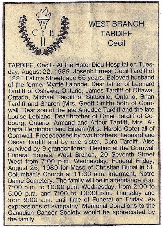 (CT05) Cecil Tardiff at a Remembrance Day Ceremony (CT06) Obituary for Cecil Tardiff