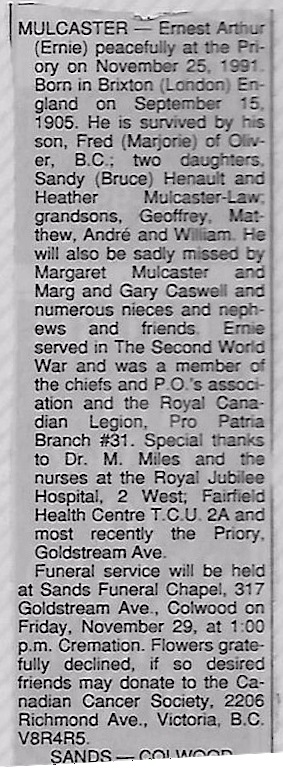 Died: 25 Nov 1991, Victoria, British Columbia