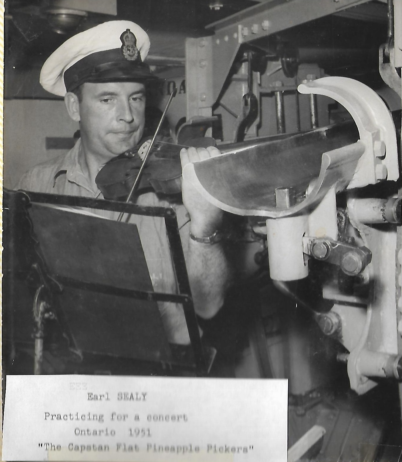 (ES01) Earl Sealy - 1939 (ES02) Fred Sealy, Seaman Gunner, HMCS OTTAWA H60 - 1939 (ES03) "The Postman" - Earl Sealy on unknown ship (ES04) CPO Earl Sealy practicing for a concert on HMCS ONTARIO - 1951. "We had a group call the The Capstan Flat Pineapple Pickers" (ES05) CPO.GI Earl Sealy - 1948